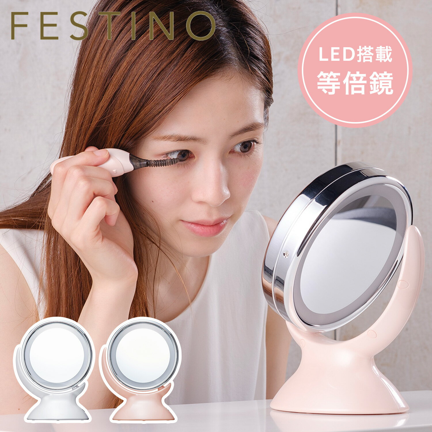 【送料無料】 フェスティノ FESTINO ミラー 照明付き 拡大鏡付き メイク 女優ミラー cpofFESTINO フェスティノ ミラー 卓上 LED 家電 電池式 SMHB-006 母の日