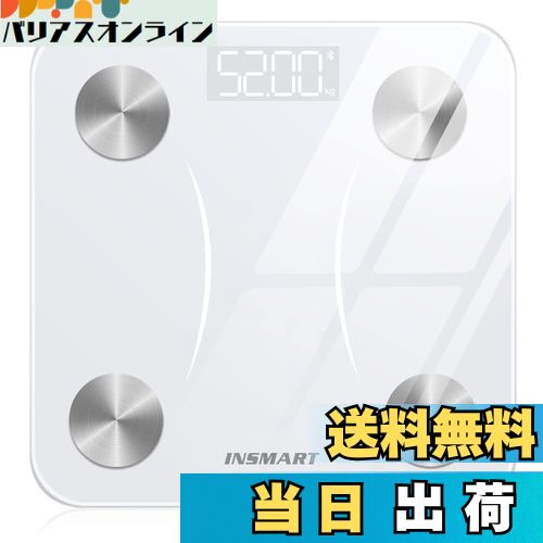 【送料無料】体重計 INSMART 体脂肪計・体組成計 スマホ連動 強化ガラス採用 体重など多項指標 高精度 体重計 Bluetooth対応 ボディスケール(日本語対応APP&日本語取扱説明書) (Mホワイト)