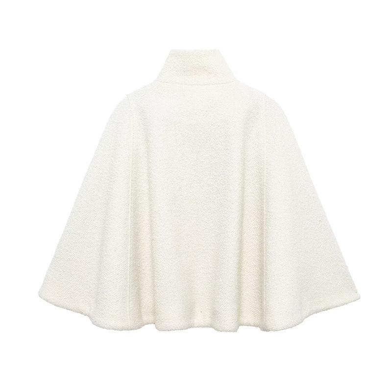 【予約販売5~12営業日での発送】アウター レディース 女性用 ケープジャケット ポンチョジャケット ショート丈 ハイネック シングルブレスト ポリエステル 欧米風 おしゃれ スタイリッシュ カジュアル 普段使い デイリーユース 着回し 秋冬 ホワイト