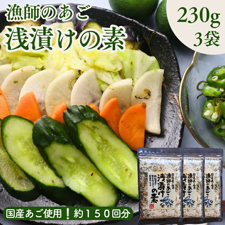 あごだしの旨みたっぷり!海の恵みで作る極上浅漬け漁師のあご 浅漬けの素 690g 【お得 な 230g × 3袋 セット】国産 飛魚 めかぶ 昆布 鰹節 あごだし 調味料 ご飯のお供 常備菜 お漬物 簡単手作り 漬け物の素