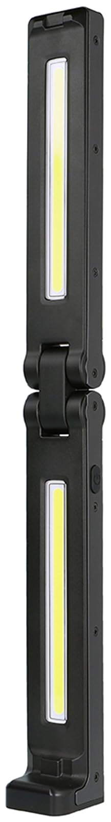 ・サイズ:約幅35×奥行38×高さ360mm、本体重量:約287g・セット内容・付属品:本体・USB Type-Cケーブル(50cm)・専用充電池(内蔵)、使用電池:専用充電池・明るさ:シングル High/400ルーメン、シングル Eco/150ルーメン、シングル Top/50ルーメン、ダブル High/800ルーメン、ダブル Eco/200ルーメン、ダブル Top/50ルーメン・実用点灯:シングル High/6時間、シングル Eco/15時間、シングル Top/17時間、ダブル High/3時間、ダブル Eco/8時間、ダブル Top/17時間・機能:2m落下耐久、耐塵・防滴仕様 (IP64準拠)、最大照射距離:約36mトップライトも搭載したバータイプワークライトシリーズ 折りたたみ式ハイパワーバーライト USB充電式 【COB LED】 多数のLEDチップを密集して基板に直接実装した光源。多灯式に比べ多重影ができにくく、照射範囲も広い特長を持つ 【トップライト】 ハンディトーチとしても使用可能 【インスタントオフスイッチ】 点灯後、一定時間経過後にスイッチを押すと、どのモードからでも一回の操作で消灯できる 【バッテリーインジケーター/チャージングインジケーター】 充電状態と電池残量の目安を表示 【Lowバッテリーインジケーター】 電池がなくなる前にLEDが点滅してお知らせ 背面&底面マグネット トップライト&メインライトで隙間から広範囲まで使える バックプッシュスイッチ