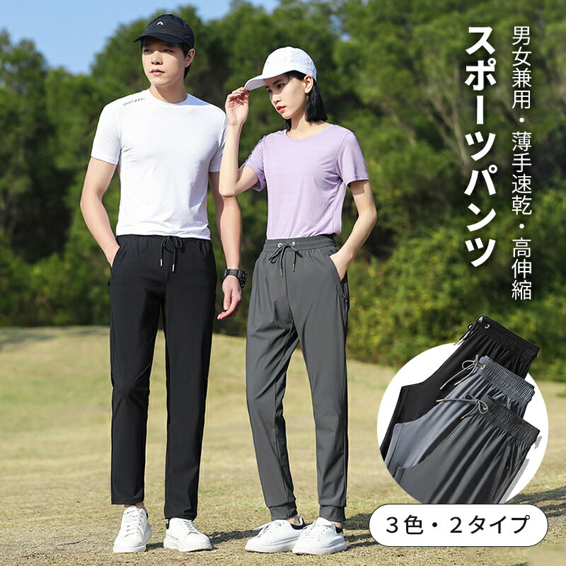 カップルパンツ 速乾パンツ スポーツパンツ 接触冷感 高伸縮 軽量 通気性 ナイロンスパンデックス 夏パンツ ジョギング ジムカップルパンツ 速乾パンツ スポーツパンツ 接触冷感 高伸縮 軽量 通気性 ナイロンスパンデックス 夏パンツ ジョギング ジム ストレート アンクル丈 モランディグリーン ベージュグレー ブラック 通勤快適 2025新作 男女兼用 Lサイズ 3XL ビッグサイズ