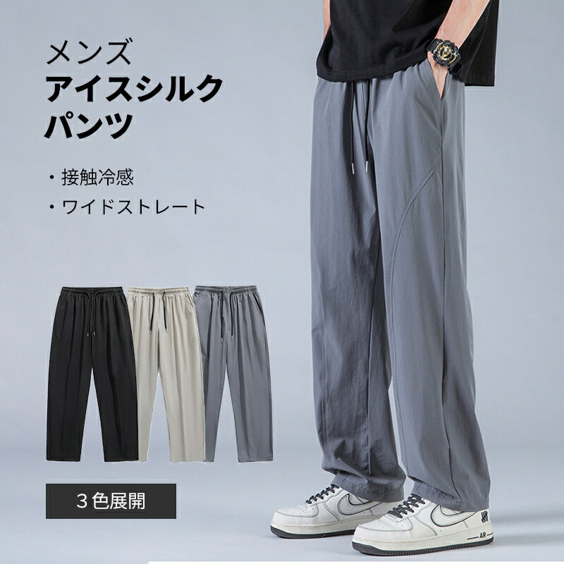 メンズパンツ 夏 NASA風 ストレッチパンツ 接触冷感 速乾パンツ アイロン不要 薄手 通気性 ストレートパンツ ゆったりメンズパンツ 夏 NASA風 ストレッチパンツ 接触冷感 速乾パンツ アイロン不要 薄手 通気性 ストレートパンツ ゆったり カジュアルパンツ 紐結び グレーパンツ ブラック ベージュ ビッグサイズ 4XL 通勤