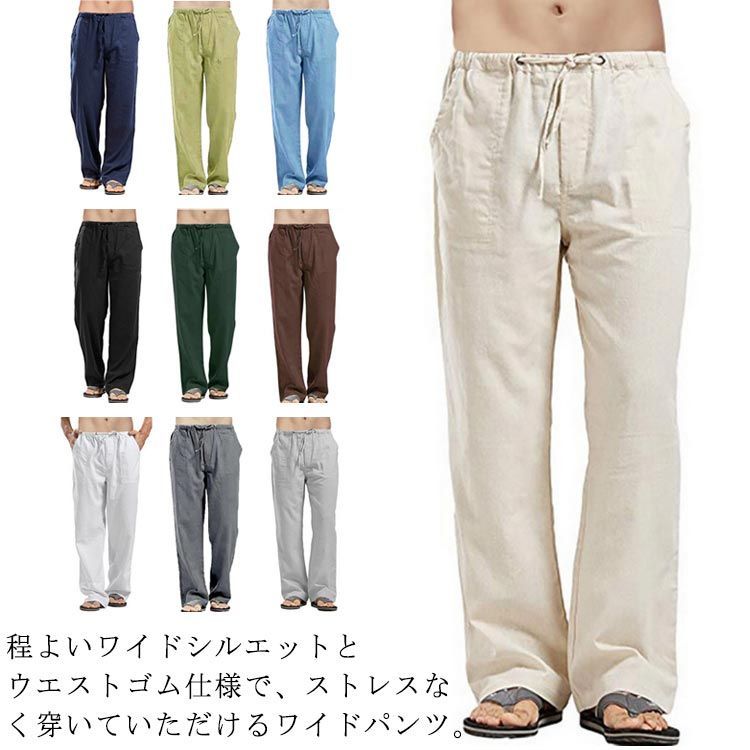 メンズ パンツ ワイドパンツ ストレートパンツ リネン コットン 綿麻 ロング丈 涼しい カジュアル イージーパンツ ウエストゴムメンズ パンツ ワイドパンツ ストレートパンツ リネン コットン 綿麻 ロング丈 涼しい カジュアル イージーパンツ ウエストゴム ゆったり 大きめ 春 夏 ボトム