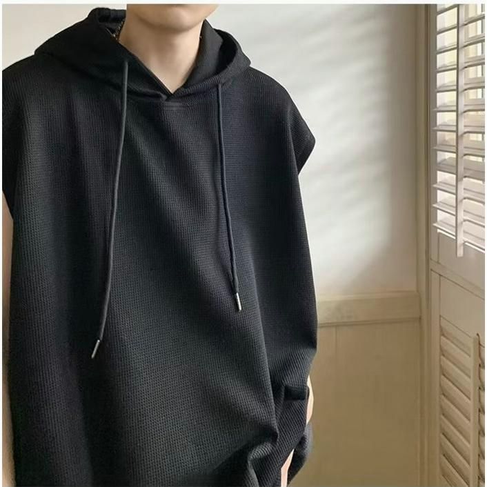 パーカー メンズ ノースリーブ ワッフル クルーネック 夏 薄手 無地 フード付き カジュアル おしゃれパーカー メンズ ノースリーブ ワッフル クルーネック 夏 薄手 無地 フード付き カジュアル おしゃれ