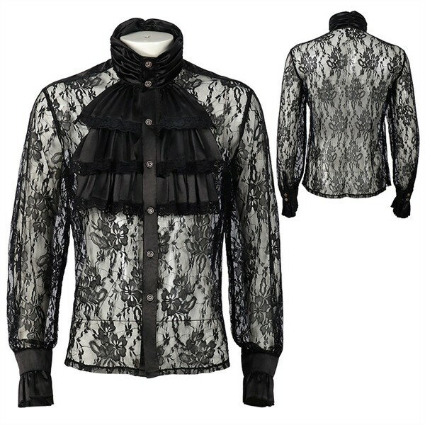 舞台ステージ衣装 ヨーロッパ中世 男性用 ゴシック風ゴシック風 トップス舞台ステージ衣装 ヨーロッパ中世 ルネッサンス 男性用 GOTHIC シャツ パンク&ゴシック 中世 フリル 王子 演劇 新劇 コスプレ 仮装 発表会 ブラック