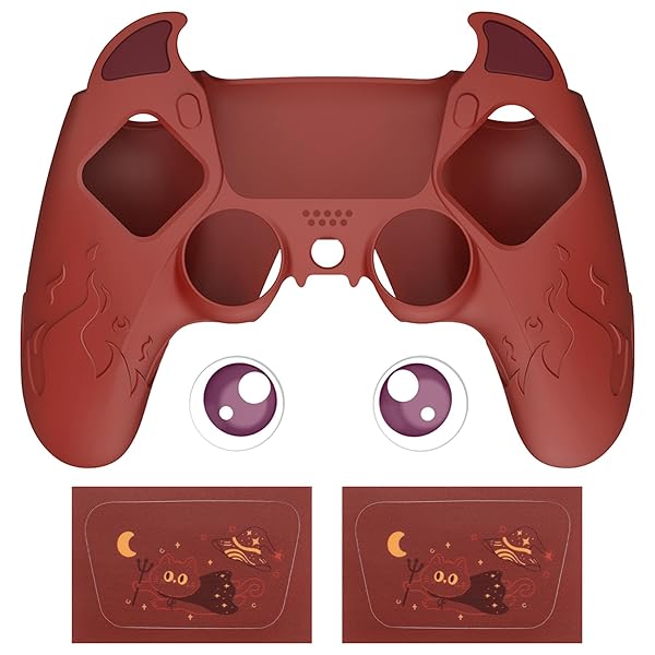 梱包サイズ:40.9cmps5コントローラーに対応用シリコンカバー、ps5に対応用カワイイコントローラーカバースキンプロテクター(デーモンスタイル)、サムグリップキャップ&タッチパッドステッカー付き【深緋色】