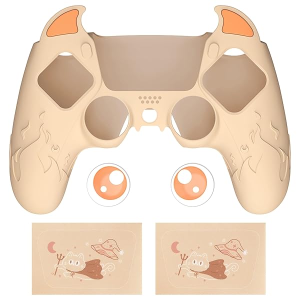 梱包サイズ:12cmps5コントローラーに対応用シリコンカバー、ps5に対応用カワイイコントローラーカバースキンプロテクター(デーモンスタイル)、サムグリップキャップ&タッチパッドステッカー付き【ピーチ色】