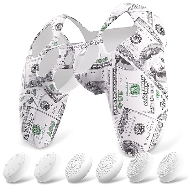 梱包サイズ:33.4cmピュアシリーズパタンデザインps5コントローラーに対応用保護シリコンカバー、ps5コントローラーに対応用ソフトラバーグリップケースサムスティックキャップ六つ付き、充電スタンドに使用可能-【100現金ドルパターン】