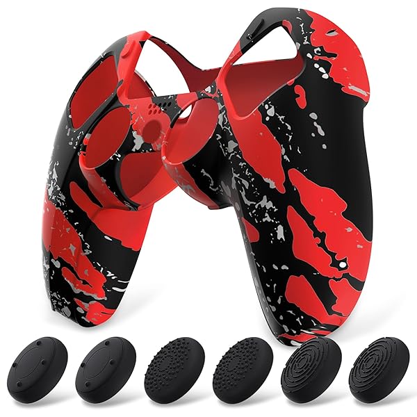 梱包サイズ:18cmピュアシリーズパタンデザインps5コントローラーに対応用保護シリコンカバー、ps5コントローラーに対応用ソフトラバーグリップケースサムスティックキャップ六つ付き、充電スタンドに使用可能-【レッドスプラッシュ】
