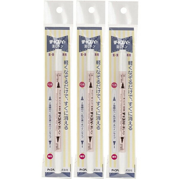 紫・黄・ピンクのチャコパーに対応した消しペンです【1000円以上お買い上げで送料無料♪】水性チャコペン チャコパー 消しペン 3本セット 裁縫 印付け 趣味 便利 ペンタイプ ブラシタイプ - メール便発送