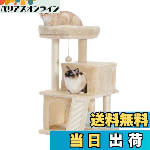 【送料無料】PAWZ Road キャットタワー ミニ 低め 低い コンパクト 爪研ぎ 麻紐 猫タワー 小型 据え置き 猫ハウス2つ おもちゃ シニア 階段 隠れ家 多機能 省スペース シニア 子猫 人気 - 高さ77cm ベージュ