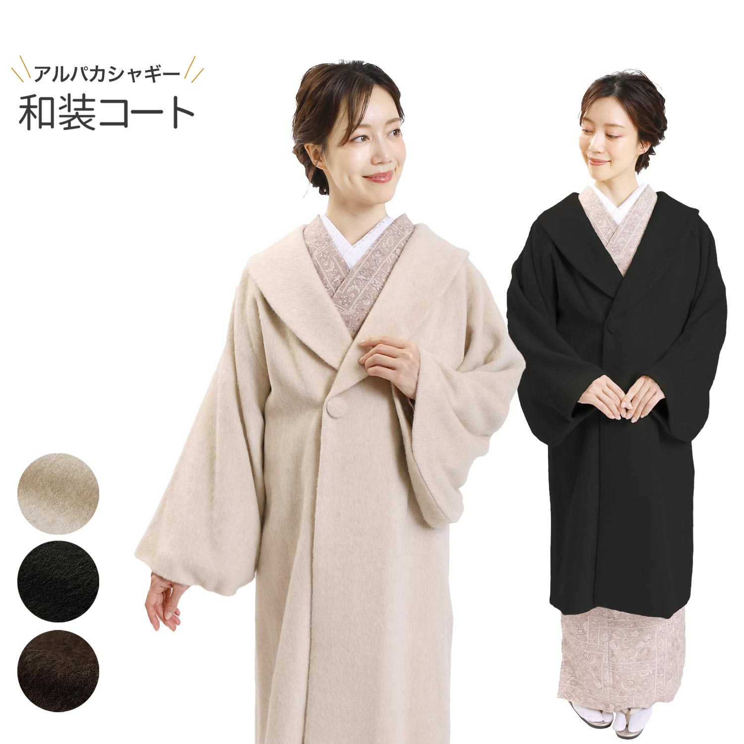 ウール・アルパカ素材の日本製和装コートアルパカ混 コート 日本製 和装コートコート ブラック ベージュ ブラウン ロング フリーサイズ へちま衿 くるみボタン 高級 起毛仕上げ 新品 着物 道中着 長コート 長羽織 防寒 厳寒 秋冬 アウター 暖かい 着物コート レディース 冬 ウール ラグラン袖
