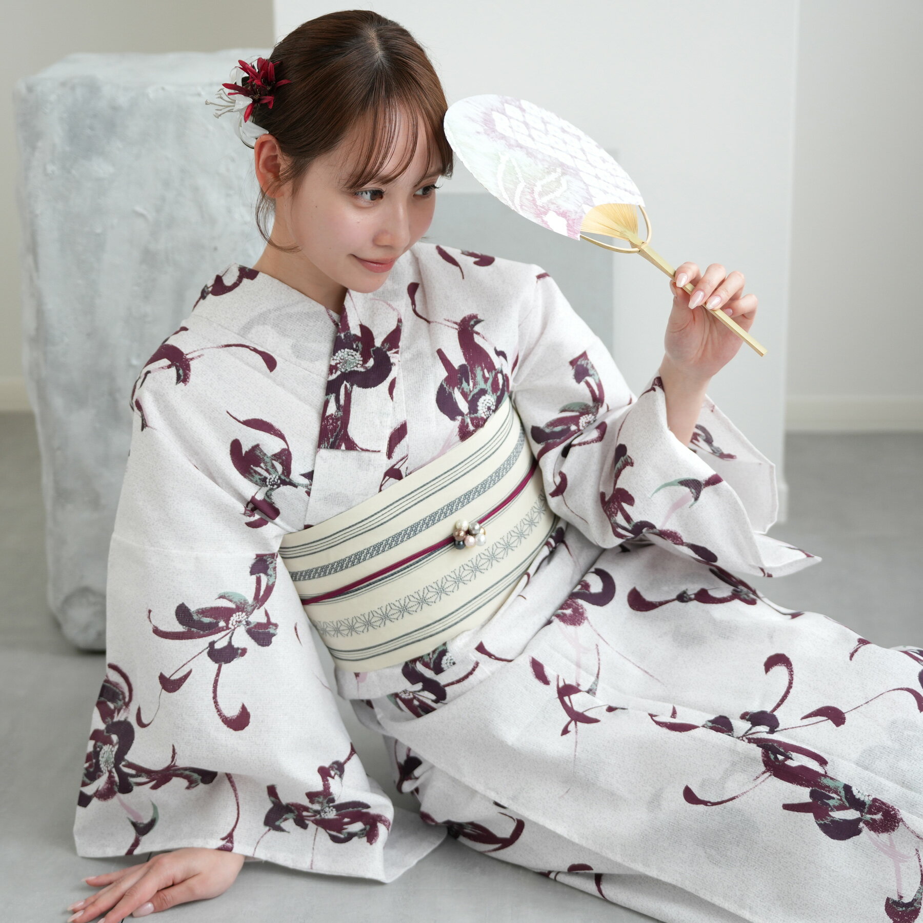 浴衣はひとりで着られる!レディース浴衣セット カンタンゆかた着付け動画公開中!【utatane 高級変わり織 浴衣3点セット レトロホワイトに流れる美人花】ここでしか買えない昭和初期アンティーク復刻版 フリーサイズ 浴衣セット(ゆかた・帯・下駄)ですぐお出かけ レトロ 上質 うたたね 国産生地 国内染色