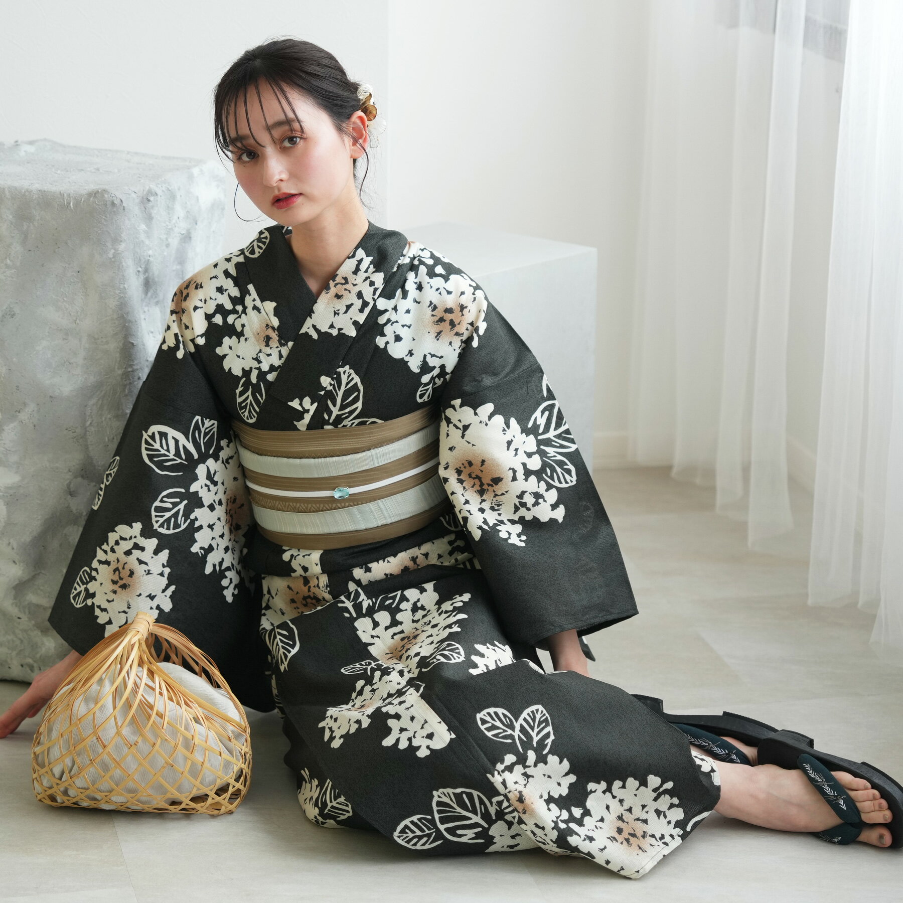 浴衣はひとりで着られる!レディース浴衣セット カンタンゆかた着付け動画公開中!【utatane 高級変わり織 浴衣3点セット 苔色の紫陽花】ここでしか買えない昭和初期アンティーク復刻版 プチサイズ(150-160cm)Sサイズ 浴衣セット(ゆかた・帯・下駄) うたたね 上質 国産生地 国内染色 低身長コーデ