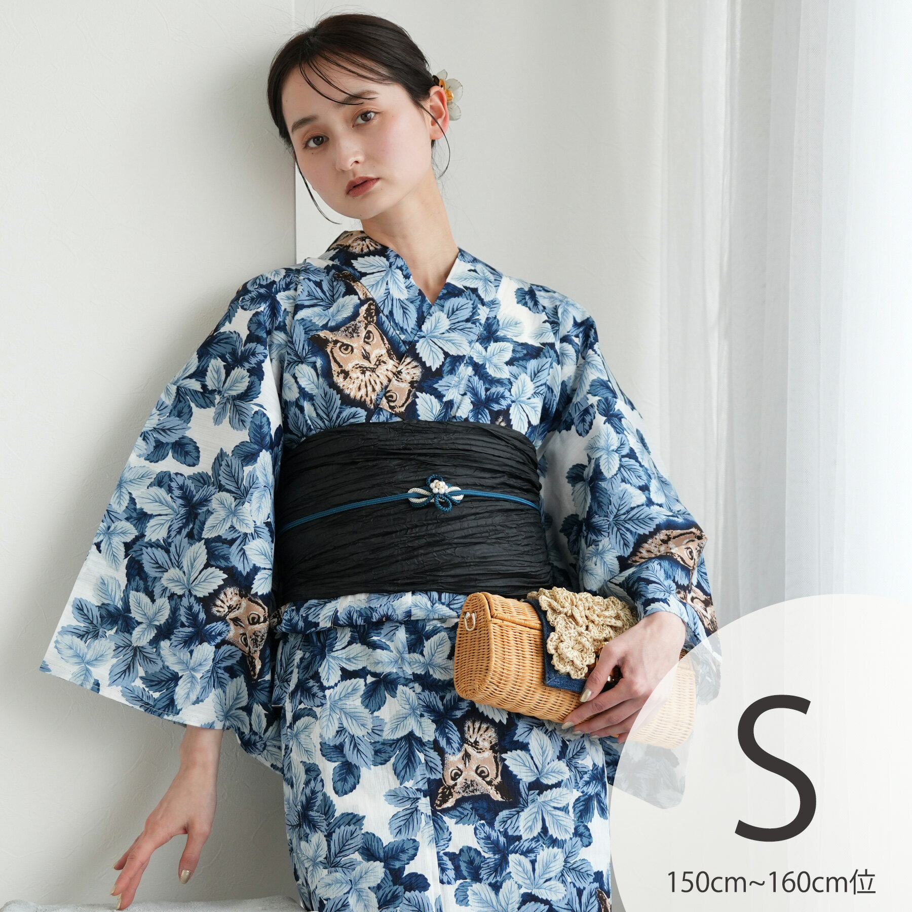 浴衣はひとりで着られる!レディース浴衣セット カンタンゆかた着付け動画公開中!【ニコアンティーク 高級変わり織 浴衣3点セット 梟の森 宵】 個性派きものブランドNicoAntiqueの新作 プチサイズ(150-160cm)Sサイズ 浴衣セット(ゆかた・帯・下駄) レトロ 上質 国産生地 国内染色 低身長コーデ