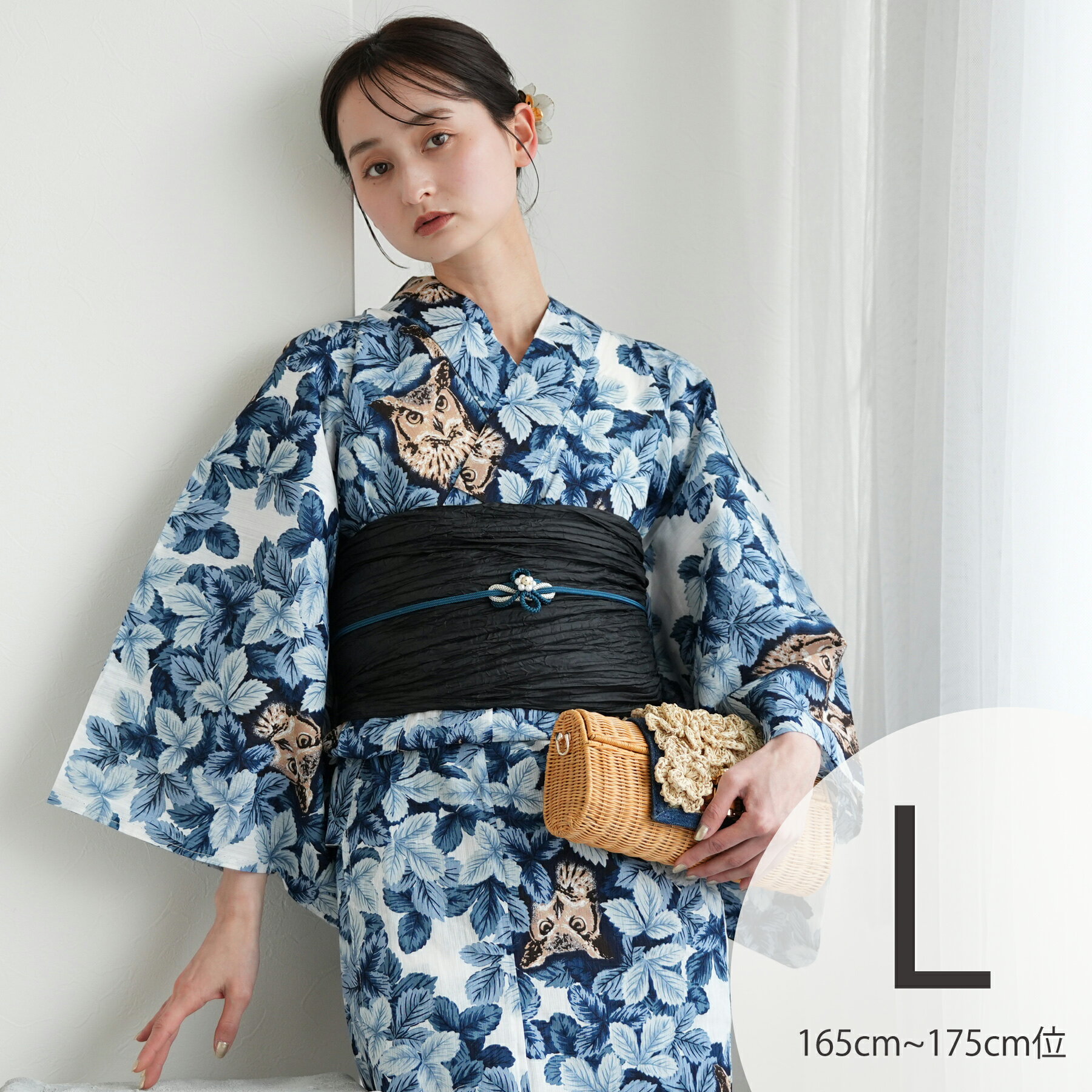 浴衣はひとりで着られる!レディース浴衣セット カンタンゆかた着付け動画公開中!【ニコアンティーク 高級変わり織 浴衣3点セット 梟の森 宵】みんなと違う浴衣を着よう!個性派きものブランドNicoAntiqueの2025年新作 トールサイズ(165-175cm)Lサイズ 浴衣セット(ゆかた・帯・下駄) レトロ 上質 国産生地 国内染色