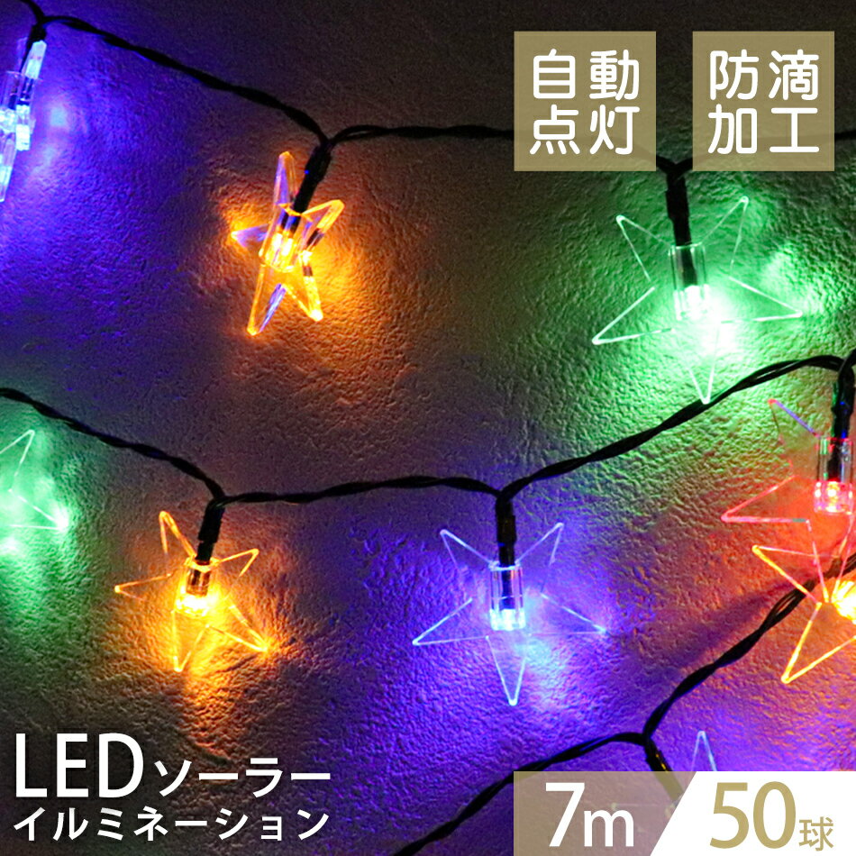 【送料無料】LEDソーラーイルミネーション イルミネーション ソーラー LED 充電式 電気代0円 太陽光で発電して夜間に自動点灯 豪華なライトアップイルミネーション ソーラー LED 充電式 50球 星型 スター モチーフ 7m LEDイルミネーション ソーラーライト 屋外 おしゃれ かわいい 防滴 イルミネーションライト ガーデンライト クリスマス ハロウィン 飾り 電飾
