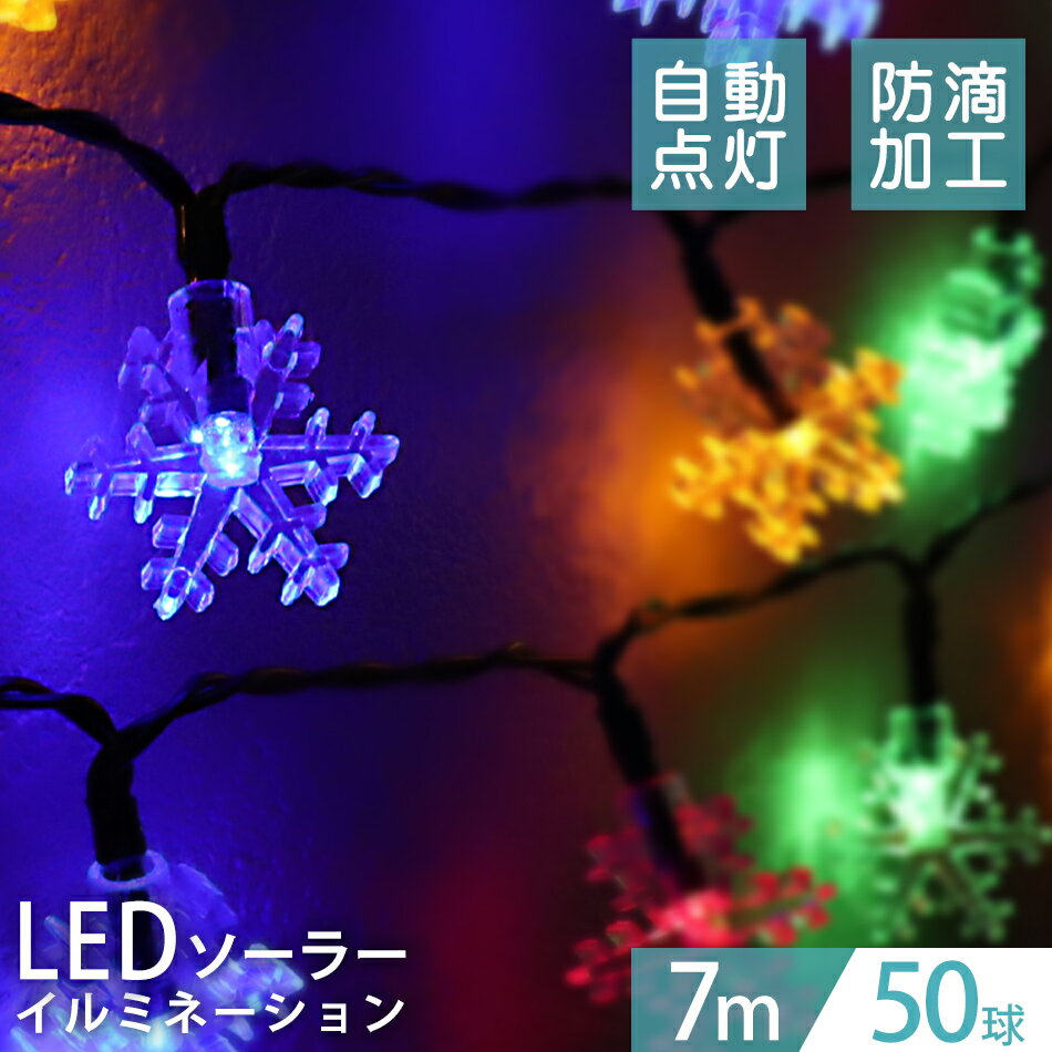 【送料無料】LEDソーラーイルミネーション イルミネーション ソーラー LED 充電式 電気代0円 太陽光で発電して夜間に自動点灯 豪華なライトアップイルミネーション ソーラー LED 充電式 50球 雪 結晶 モチーフ 7m LEDイルミネーション ソーラーライト 屋外 おしゃれ かわいい 防滴 イルミネーションライト ガーデンライト クリスマス ハロウィン 飾り 電飾