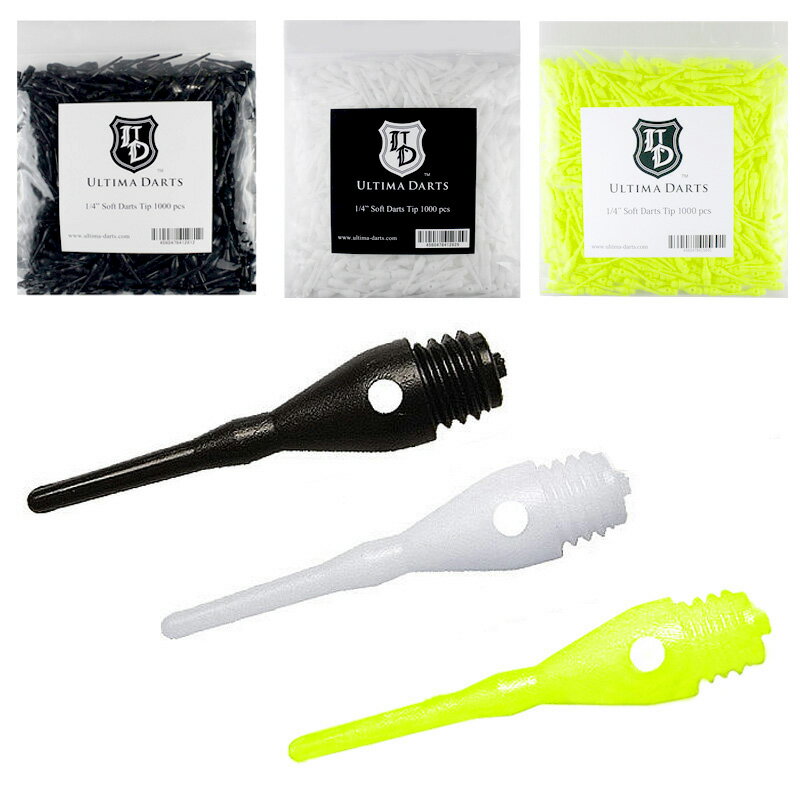 ULTIMA DARTS社製1/4inch(約6.3mm)サイズのハウスダーツ用チップです。 1000本入り ※通常(2BAタイプ)のダーツにはネジ径が合わない為、使えませんのでご注意下さい。