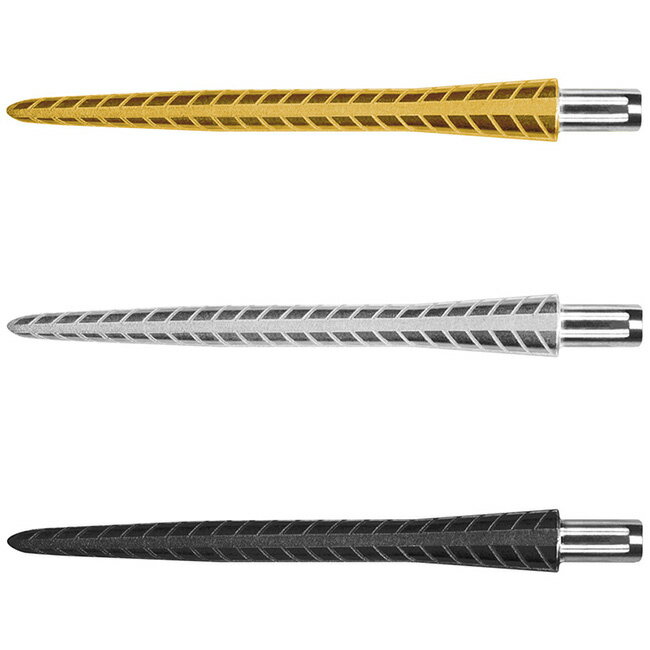 カットを最適な位置にバランスよく配置して、様々なエリアを有効に利用できるよう製作されています。 バレルとの接合部から滑らかな円状になっているので、違和感無く使用できる設計です。 更に2つのカットが加工されていて、グリッピングにも有効に利用できます。 最先端からカットまでは12.0mm。 このカットがダーツボードから抜け落ちる可能性を低減しています。 長さ:30mm タイプ:2BA 素材:ステンレス 重量:2.22g