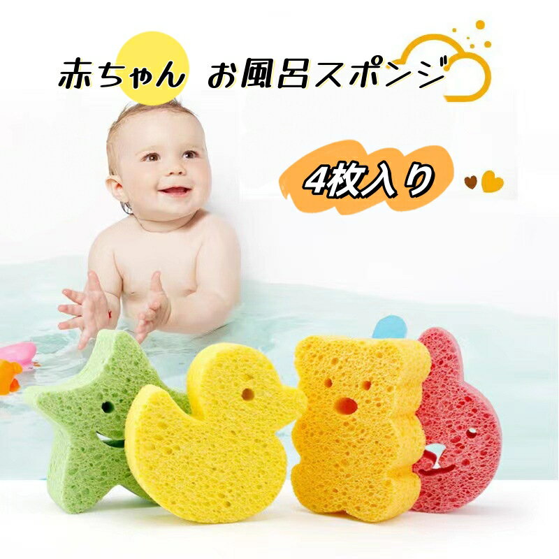 \クーポン配布中 送料無料 おすすめ 大人気 新品 高品質/4枚入り お風呂 スポンジ 赤ちゃん お風呂 スクラバー アニマル うさぎ アヒル スター 形 ヘチマ お風呂 プーフ メッシュ アニマル おもちゃ お風呂 スポンジ スクラバー 用 子供用 大人用