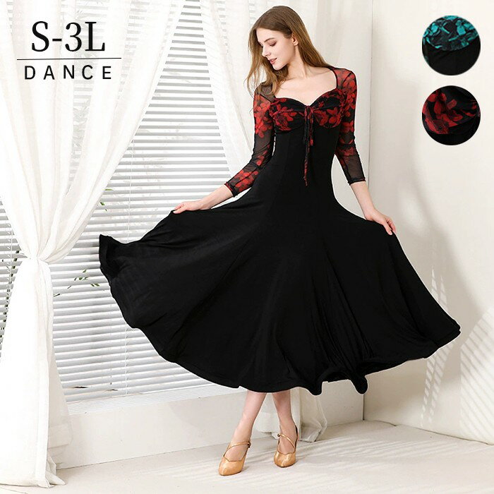 S-4L 社交ダンス衣装 練習着 ドレス 豪華装社交ダンス衣装 レディース モダンダンス ワンピース ロングスカート 社交ダンス練習着 ドレス 豪華装 タンゴ ワルツdm009f2f2c6
