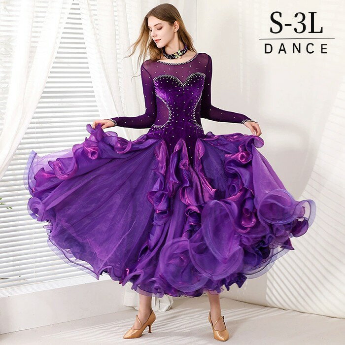 社交ダンスドレス モダンドレス パープル 社交ダンス衣装 社交ダンス ドレス 衣装 長袖 大きい裾社交ダンス ドレス 2点セット フリル モダンドレス ラインストーン ビジュー 首飾り チョーカー パープル 紫 社交ダンス衣装 長袖 大きい裾 モダン スタンダード ワルツ レディース ワンピース ダンス衣装 ステージ衣装 イベント パーティー d1374d7d7m6