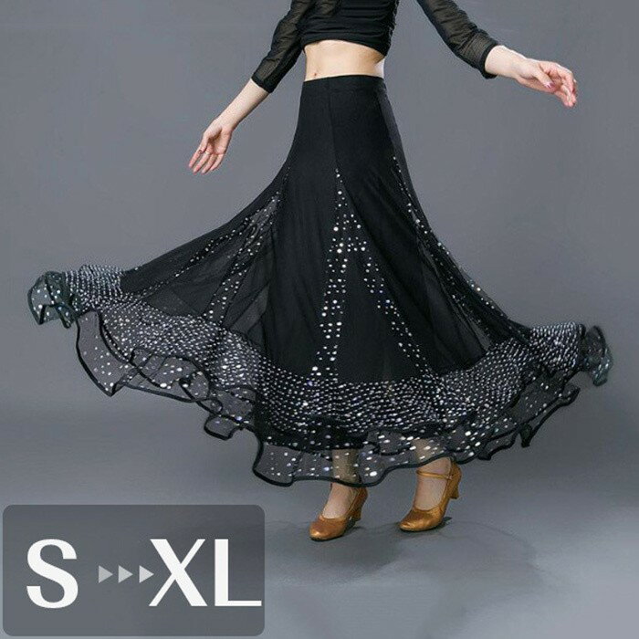 S-4L スカート モダン 社交ダンス キラキラ 大きい裾 練習着 発表会社交ダンススカート 練習着 社交ダンス スカート フレアスカート キラキラ 大きい裾 ブラック レッド ゴムスカート レッスン用 レディース ラテンスカート ダンス衣装 競技ダンス モダン 演奏会 発表会 コーラス タンゴ服 イベント衣装 ステージ衣装 be043x0x0x0