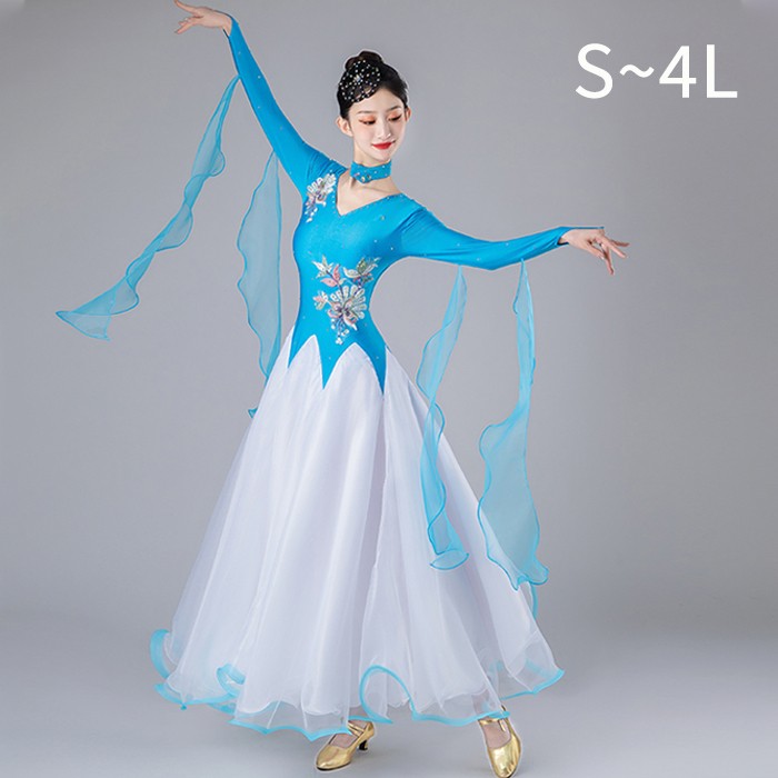 社交ダンスドレス 社交ダンス モダンドレス 大きいサイズ 長袖 大きい裾 スタンダードドレス ワルツダンス社交ダンスドレス 社交ダンス モダンドレス 大きいサイズ 長袖 大きい裾 スタンダードドレス ワルツダンス ワンピースドレス ダンス衣装 ダンスウェア ステージ衣装 競技会 パーティー 発表会 競技着 練習着 舞台 演奏会 演出 ホワイト ブルー d1301d7d7lc