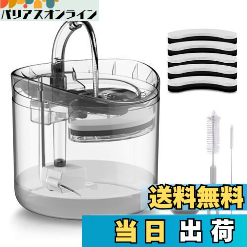 商品情報商品の説明いろんなペットの水飲みを幅広く対応できる猫給水器、循環式犬猫水飲み器です。主な仕様 ○超静音&省エネ:この猫水飲み器は超静音と振動低減設計の最新世代水中ポンプを採用することにより、作動音がとても静かで、水の音ほぼなしで、夜のおやすみの邪魔になりません。猫給水器は省エネ技術が使用されており、「1.5KW/一ヶ月」という低消費を実現、電気代月42円。また、耐久性についてこのペット自動給水器は総数10,000時間以上働けます、2年以上の適切な使用で作動することができます。br○浄水機能&循環式: 三重濾過活性炭フィルターは水道水を常に軟水化し、マグネシウム、カルシウム、塩素、匂い、雑菌を取り除き、皮毛、食べ残し、ほこりを分離しながら循環しています。水を常に新鮮な状態に保つ水質浄化仕組みがあります。ペット水飲み器としてだけでなく、水槽にもとして、貯水池で金魚を飼うこともでます。活性炭に微細粉があるので、フィルターを取り外して、流水でよく洗って、再度セットしてください。br○1.8L大容量&全透明: ペット自動給水器は猫、中小型犬、鳥などだけではなくさまざまなペットにも対応できます。頻繁に水を補給する必要はなく、保管した水は1ヶ月間使用できますので、長時間外出しても心配する必要もありません。透明なデザインで、タンクに残る水量と水質はいつでも確認できますので、水のタイムリー的に補充と交換することができます。自動給水器の蛇口の清掃専用ブラシも付いています。br○2つタイプの給水モード: ネコちゃん、ワンちゃんにとってお水は大切です。水を飲んでもらう為、猫ちゃん、犬ちゃんの好奇心を刺激する2つの水流に切り替えられる猫自動給水器です。自動給水機が「蛇口式」、「湧き泉式」2つタイプの水流れモードで、蛇口水が好きな子は流れ落ちるタイプが好きかもしれません、舐めて飲むのが好きな子は湧き出るタイプをお勧めします。br○仕樣 製品名:ペット用自動給水器、サイズ(cm):幅約16.5×奥行約16.5×高さ約16.5、水中ポンプのコード長さ:2m、フィルター:高ヨウ素ココナッツ殻活性炭(5個入り)セット内容:ペット自動給水器×1、交換フィルター×5、水中ポンプ×1、アダプター×1、清掃ブラシ×3。※水は2日1回の目安で交換してください。ポンプは2週間を目安に洗浄してください。フィルタは2~4週間を目安に交換してください。