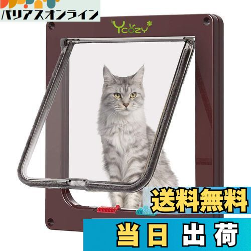 【送料無料】Ycozy ペットドア 猫 超薄型 外寸25×23.5cm お勧め最大戸の厚さ2.0cm 猫 出入り口 小型犬用 ドア 猫扉 4-way切替 ロック キャットドア 室内用 冷暖房対策