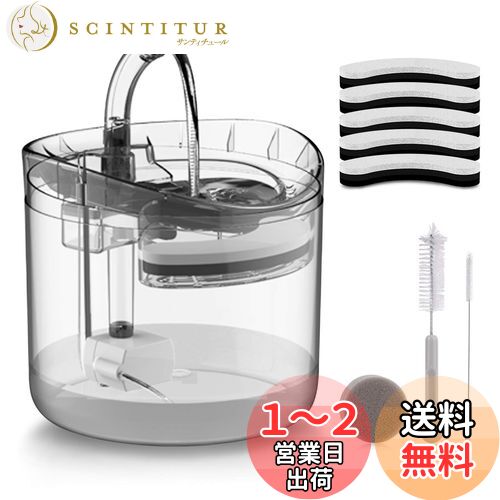 商品情報商品の説明主な仕様 ○超静音&省エネ:この猫水飲み器は超静音と振動低減設計の最新世代水中ポンプを採用することにより、作動音がとても静かで、水の音ほぼなしで、夜のおやすみの邪魔になりません。猫給水器は省エネ技術が使用されており、「1.5KW/一ヶ月」という低消費を実現、電気代月42円。また、耐久性についてこのペット自動給水器は総数10,000時間以上働けます、2年以上の適切な使用で作動することができます。br○浄水機能&循環式: 三重濾過活性炭フィルターは水道水を常に軟水化し、マグネシウム、カルシウム、塩素、匂い、雑菌を取り除き、皮毛、食べ残し、ほこりを分離しながら循環しています。水を常に新鮮な状態に保つ水質浄化仕組みがあります。ペット水飲み器としてだけでなく、水槽にもとして、貯水池で金魚を飼うこともでます。活性炭に微細粉があるので、フィルターを取り外して、流水でよく洗って、再度セットしてください。br○1.8L大容量&全透明: ペット自動給水器は猫、中小型犬、鳥などだけではなくさまざまなペットにも対応できます。頻繁に水を補給する必要はなく、保管した水は1ヶ月間使用できますので、長時間外出しても心配する必要もありません。透明なデザインで、タンクに残る水量と水質はいつでも確認できますので、水のタイムリー的に補充と交換することができます。自動給水器の蛇口の清掃専用ブラシも付いています。br○2つタイプの給水モード: ネコちゃん、ワンちゃんにとってお水は大切です。水を飲んでもらう為、猫ちゃん、犬ちゃんの好奇心を刺激する2つの水流に切り替えられる猫自動給水器です。自動給水機が「蛇口式」、「湧き泉式」2つタイプの水流れモードで、蛇口水が好きな子は流れ落ちるタイプが好きかもしれません、舐めて飲むのが好きな子は湧き出るタイプをお勧めします。br○仕樣 製品名:ペット用自動給水器、サイズ(cm):幅約16.5×奥行約16.5×高さ約16.5、水中ポンプのコード長さ:2m、フィルター:高ヨウ素ココナッツ殻活性炭(5個入り)セット内容:ペット自動給水器×1、交換フィルター×5、水中ポンプ×1、アダプター×1、清掃ブラシ×3。※水は2日1回の目安で交換してください。ポンプは2週間を目安に洗浄してください。フィルタは2~4週間を目安に交換してください。
