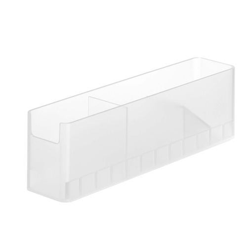 詳細説明【特長】・冷蔵庫の奥まで無駄なく使える、奥行がワイドな冷蔵庫中収納ケースです。・立てて収納できるから、納豆や豆腐パックの賞味期限が見やすく収納できます。・取り外しできる、仕切り板が2枚付いています。・取り出しやすいハンドル付き。 【製品仕様】・対応サイズ(約):奥35cm以上の冷蔵庫内の棚 商品仕様(スペック)カラー:ホワイト本体サイズ(約):[本体]37.5×奥11×高8.2cm :[内寸]幅34×奥10×高7.5cm [仕切り(1ピッチ)]幅2.8cm重量(約):435g素材:[本体/仕切り]PS樹脂耐熱温度(約):80度耐冷温度(約):-40度冷蔵庫の奥まで無駄なく使える