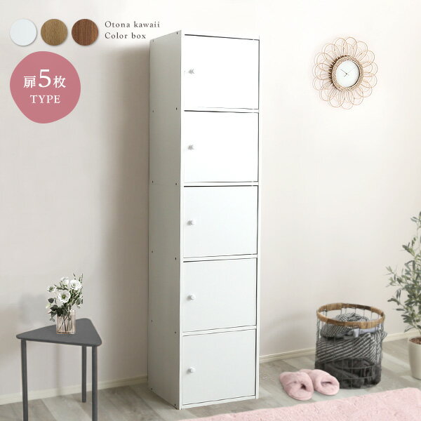 【商品について】■外寸:幅41cm×奥行38.5cm×高さ171cm■内寸:幅38cm×奥行34cm×高さ32cm(×5段)■その他:お客様組立品 【検索キーワード】 カラーボックス 収納ボックス 収納棚 扉付き 5段 マルチラック 収納 フタ付き ふた付き ラック リビング収納 収納家具 収納ラック リビング ラック シェルフ 棚 本棚 書棚 収納雑貨 CDラック DVDラック 一人暮らし 北欧仕様詳細商品名取り外し可能な扉付きカラーボックス(41cm幅・1段×5枚扉の計5段)サイズ本体外寸:(約)幅41x奥行38.5x高さ171.5cm内寸:(約)幅38x奥行35x高さ32cm(×5段)棚板の厚み:(約)1.5cmカラーホワイト、ダークブラウン、オーク特徴キッチンやリビングなどのちょっとした空いたスペースに置きやすい41cm幅A4ファイルを縦のまま収まるサイズで、本や雑誌も楽々収納5段すべてにほこり汚れや日焼けから収納物を守る扉付き生活感を隠せる扉は、はずしてオープン収納としてもお使いいただけます北欧やシンプル、シックなど様々なお部屋に馴染む美しい木目転倒予防バンドや背板ストッパー、上下段連結金具などが付いた頑丈設計材質 構造部材:パーチクルボード、MDF表面材:プリント紙化粧合板梱包サイズ【2-1】(約)幅103x奥行40x高さ8cm【2-2】(約)幅72x奥行40x高さ9cm組立当商品は、お客様組み立ての商品です。組立目安時間:(約)30~45分注意※商品の仕様は、随時改良するように努めております。そのため、生産ロットにより品質に差し支えの無い程度で多少の変更が予告なく行われる場合がございます。リピート注文などで同じ仕様のものをご希望される場合はご注意ください。
