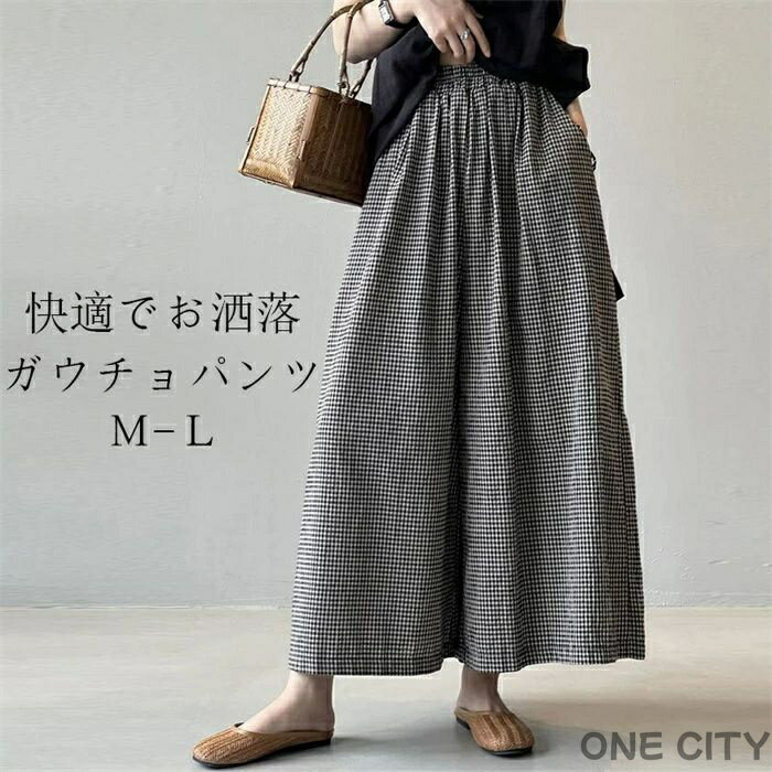 ワイドパンツ レディース ウエストゴム イージーパンツ ガウチョレディース ガウチョパンツ パンツ 体型カバー 大きいサイズ 九分丈 ボトムズ 春 夏 ふんわり 着痩せ スカーチョ チェック柄