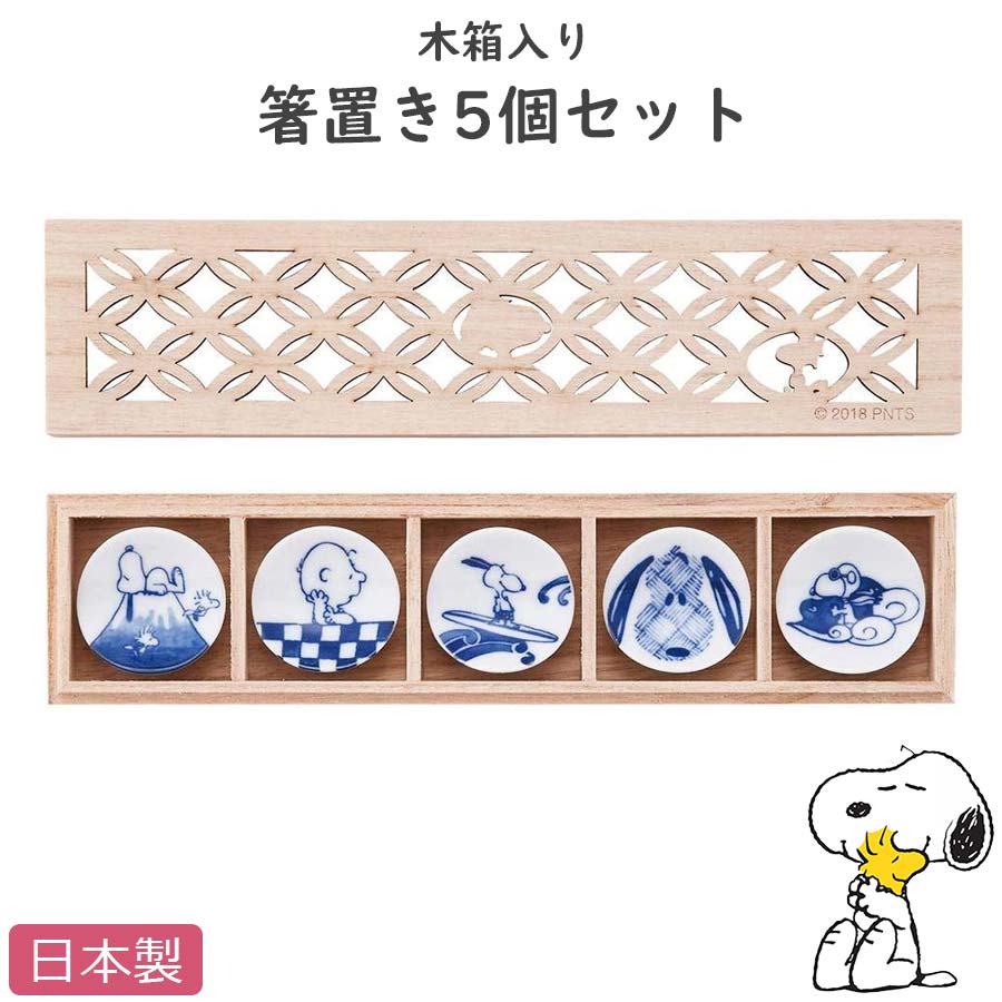 スヌーピーの和食器シリーズの箸置き5個セット。 おしゃれな木箱入り。【スヌーピー 木箱入箸置揃】箸置き5点セット SNOOPYグッズ 大人向け和食器 食洗機対応 日本製【山加商店】