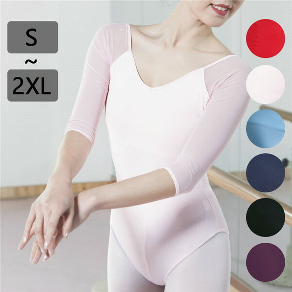 バレエ レオタード レディース 大人 袖あり 長袖 5分袖 透け感 Uバック バレエウェア バレリーナ シンプル 衣装 ダンス ダンスウエア ユニフォーム レッスン着 お洒落バレエ レオタード 大人 女性 おしゃれ 可愛い 長袖5分袖 透け感 Uバック バレエウェア バレリーナ シンプル ダンスウエア ユニフォーム レッスン着 お洒落 練習衣装 美シルエット オシャレ バレエ用品 新体操 S M L XL 2XL ホワイト ネイビー パープル 水色 レッド 赤