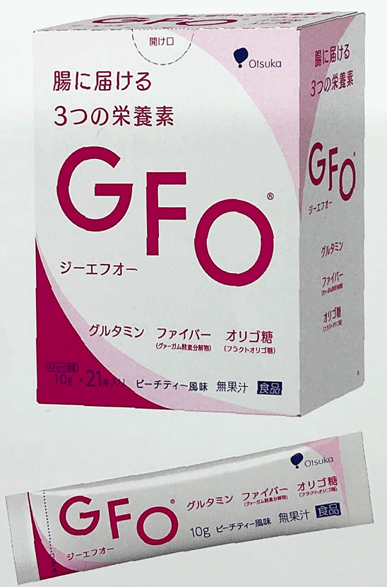 "3つの栄養素・グルタミン、ファイバー、オリゴ糖"大塚製薬工場「GFO(ジー・エフ・オー)」10g×21袋(ピーチティー風味)