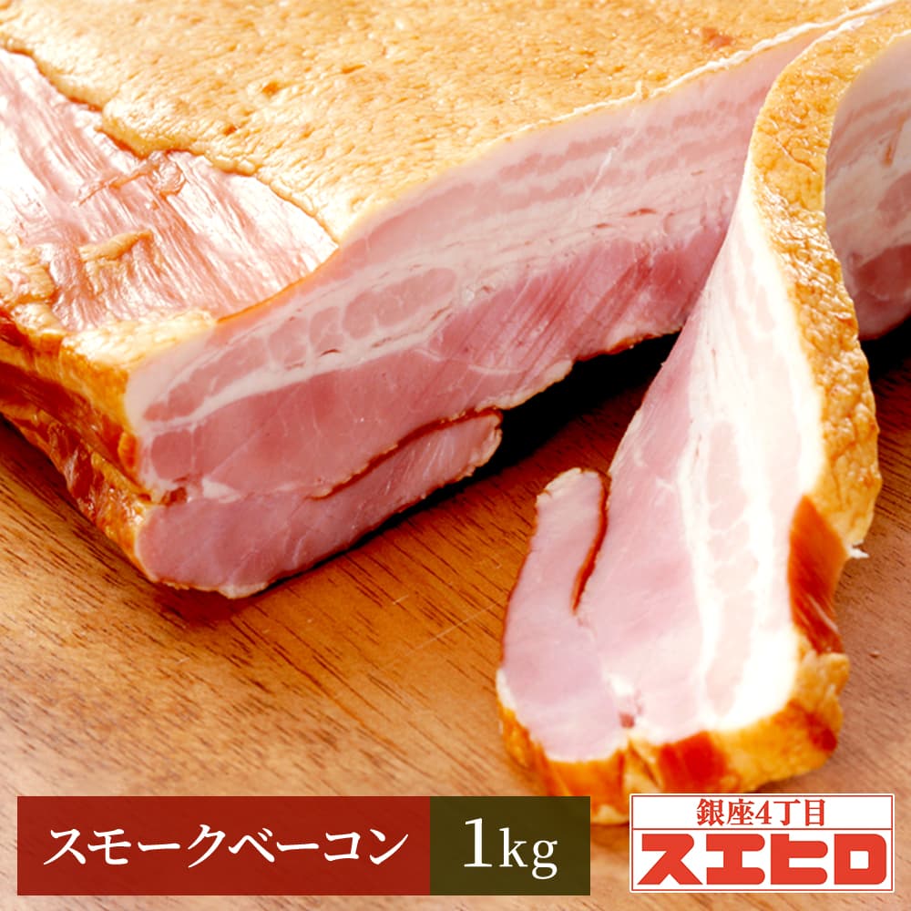 スモーク ベーコン ブロック 1kg | 送料無料 バーベキューでも活躍 豚バラ肉を桜のチップを用いて丹念にスモークしたベーコン。 燻製された豊かな風味が絶品。スモーク ベーコン ブロック 1kg スエヒロ ギフト ボックス 桜チップ 燻製 お礼 贈り物 ギフト 食べ物 高級 お返し 手土産 グルメ
