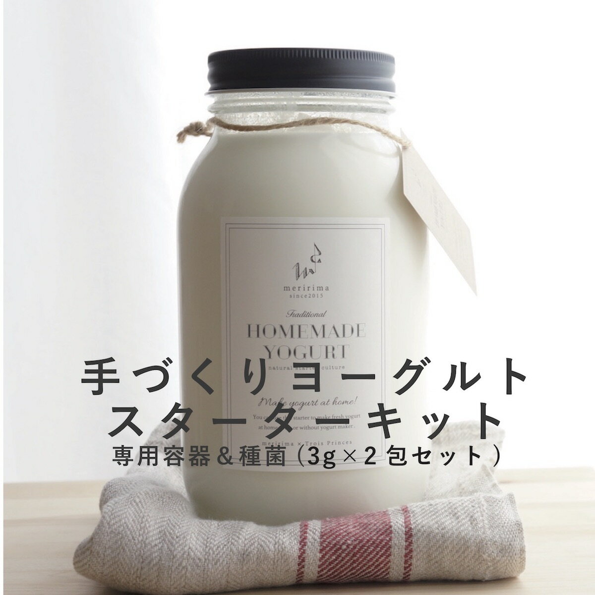 常温で繰り返し作れる簡単手作りヨーグルトキット!牛乳、豆乳を用意するだけでOK!詳しい説明書入りヨーグルトメーカーなどの特別な機械は不要♪【送料無料/ギフトにおすすめ♪】メリリマ 手づくりヨーグルトキット 専用瓶 & 種菌3g×2包手作り ヨーグルト スターター キット セット カスピ海ヨーグルト ケフィア 健康 美容 ダイエット てづくりヨーグルト 種菌 乳酸菌 父の日