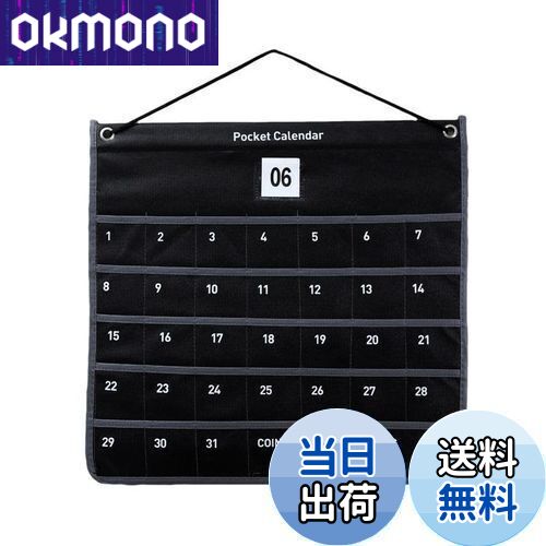 【送料無料】Cluoling カレンダーポケット ウォールポケット お薬カレンダー 1ヶ月 薬かれんだーポケット 壁掛けポケット 壁掛け収納 小物収納 カードサイズ 吊り下げ (ブラック)