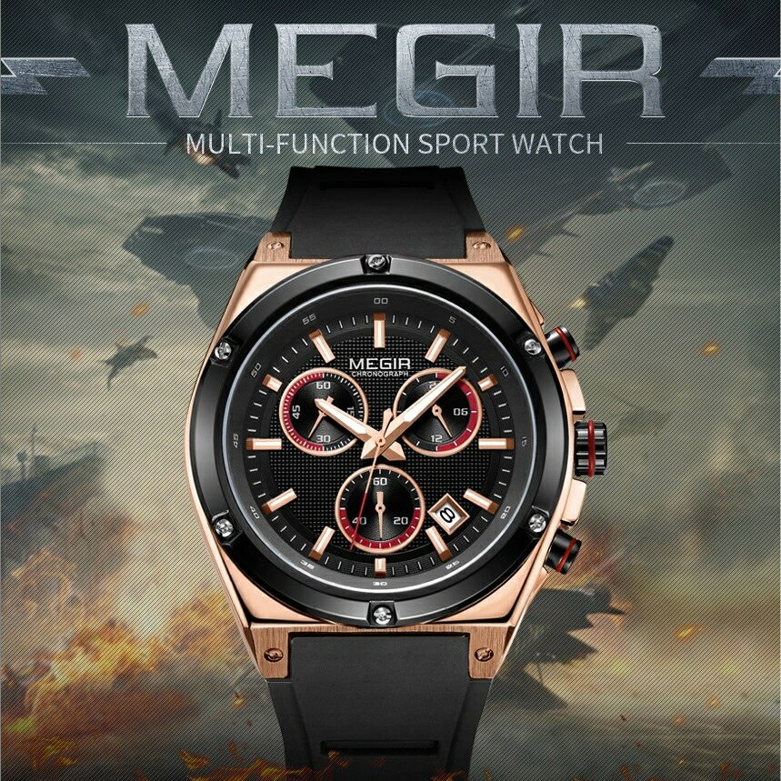 『最大20%OFFクーポン』Megir 腕時計 時計 メンズ 男性用 カレンダー ビジネ ス スポーツ 多機能 クロノグラフ ストラップウォッチ 海外 欧米 人気モデル クォーツ 2073