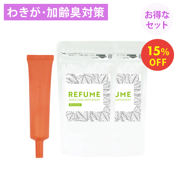 わきが対策 加齢臭対策 スソガ すそわきが デオドラント 強力 脇汗 汗じみ防止 足 臭い 制汗剤 無香料 お口の不快感 乳酸菌 柿渋 子供 こども レディース メンズ リフュームわきが対策 ワキガ クリーム わきが お口の不快感 サプリ タブレット デオドラント 腋臭 脇汗 予防 加齢臭 体臭 消臭 エチケット 乳酸菌 ハイネス リバランスデオ リフューム【お得なセット 15%OFF】男性 女性 子供 柿渋 ブドウ葉【リバランスデオ1本&リフューム2袋セット】