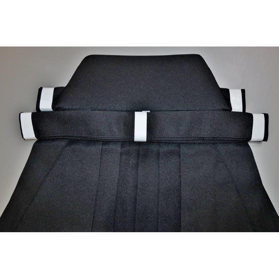 袴の幅広タイプ 前と後ろを広めにとっている為、前と後ろの間に出来る隙間(側面部分)の開きが狭くなります。 通常の袴 (多少の前後はございます。) 男性用 前:32 後:27 女性用 前:32 後:28 中幅広タイプ 男性用 前:36 後:27 女性用 前:36 後:32 幅広タイプ 男性用 前:42 後:32 女性用 前:41 後:35 袴の「ひだ」を縫っているため、たたみやすく、洗濯もしやすくなっています。(写真2枚目参照) 洗濯する時はたたんだ状態でネットに入れて洗濯し、 吊っておいて頂くと皺も伸びます。 素材:ポリエステル100% 写真は男性用(背板あり)になります。女性用には背板は付いていません。 後ろのヒダ:男性用 1本・女性用 3本 になります