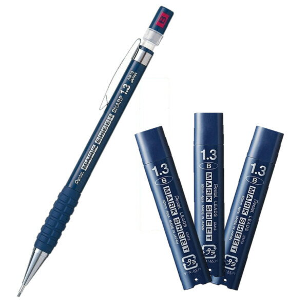 マークスピードがアップ! 1.3mmの極太芯が、わずか約1往復でマークを可能に。ぺんてる マークシートシャープ 1.3mm B 本体1本 替芯 3個 セット AM13-B CM13-B - 送料無料※800円以上 メール便発送
