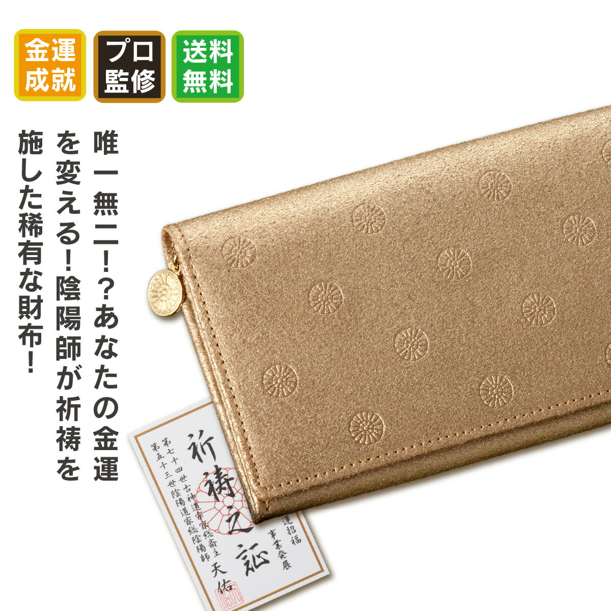 唯一無二!?あなたの金運を変える!陰陽師が祈祷を施した稀有な財布!陰陽師正当継承の祈祷が込められた開運力にこだわった特製財布!商品説明黄金加工の牛革を使用した本格派の長財布。陰陽師「穂積天祐」師の監修を受け、秘伝の祈祷に相応しい財布として誕生した逸品です。裏革を大胆に使用したフラップは心地よく上質な手触り、熟練財布職人が吟味した機能性はシンプルにして必要十分。財布から金運のイメージを変えたいすべての皆様におススメできる財布です。◆開運ディレクターより・・・陰陽道のさまざまなモチーフを上品に織り込みながら、秘儀『最勝王法神道大護摩』を施しされたことで、開運力は至高のレベルにまで高められていると感じる稀有な財布!持った瞬間にその違いを感じ取れたらあとは目標に向かって進むだけです!商品番号 [ Item No ]T00015販売名 [ Item name ]【陰陽師修法財布】吉祥招財天庫主な素材 [ material ]・牛革・レーヨン・翡翠6ミリカボッションファスナーストラップ:真鍮(金色メッキ加工)色 [ color ]ゴールドサイズ [ size ]サイズ(約):縦50mm×幅195mm×厚み28mm 重量150g商品仕様 [ spec ]・財布本体×1(祈祷証明書付き)(札入れ×2・カード入れ×16・小銭入れ×1・フリーポケット×4・背ポケット×1)天然皮革を使用した財布です。天然皮革由来、または加工時避けられないシワや傷については加持祈祷に耐えられる場合はそのままお届けしております。安心してご活用ください。※少量ハンドメイド生産品につき、色味や細部の仕上げ、サイズや重量等に若干の個体差があります。商品を表すキーワード[ tags ]開運グッズ 開運アイテム 運気アップ スピリチュアルグッズ 御守 たまふりや 陰陽師 財布 本革 五芒星 ご祈祷済み お祓い 厄払い 金運 開運 たまふり屋の開運グッズ スピリチュアル 運命を変える 運命を拓く 幸せを呼ぶ 幸福の習慣陰陽道の正当継承者の監修・祈祷によって誕生した財布『吉祥招財天庫』!第五十三世陰陽師 穂積天佑師は、天照大御神を祖神とするわが国最古の古神道の正統を受け継ぐ神官家・穂積家の嫡流として生を受け、古神道宗家第七十四世総斎主の職にあります。また天照大御神の神孫にして大和建国の祖神である櫛甕玉饒速日尊(くしみかたまにぎはやひのみこと)の直系を継承。天佑師の先祖である穂積濃美麻呂が陰陽道の祖である役行者(えんのぎょうじゃ)より陰陽の秘法を授けられ、また同じく師の先祖となる菅原宮内少輔道景は、あの平安時代の大陰陽師 安倍晴明の末裔である土御門泰重卿より天社陰陽道の秘儀を伝授されており、天佑師はこの二つの正統なる陰陽道の法脈を受け継いでいる唯一の陰陽師なのです。渾身の祈祷を施こすことで生まれた、あなたに金運と開運招福をもたらす財布!第五十三世陰陽師 穂積天佑師による監修とご祈祷によって誕生した財布『吉祥招財天庫』は、金運招来のために天佑師が特別に渾身の護摩祈祷「最勝王法神道大護摩」を施した財布です。この特別な祈祷は、あの歴史的な国難であった蒙古襲来の際、時の天皇である亀山天皇(上皇)と共に天佑師の祖先である穂積神官家第五十世 穂積重宜公が昼夜を問わず行ったもので、神風をもたらし日本の窮地を救った祈祷として伝わっています。「最勝王法神道大護摩」の名称は、亀山天皇が蒙古を撤退させて以降、その効験の高さから自ら命名されたものと伝わり、このことが別名「神風の大護摩」と称される由縁となっています。なお天佑師による祈祷「最勝王法神道大護摩」が施された『吉祥招財天庫』は、お届けできる本数に限りがあるため、お取り扱いできるショップも限定された大変希少な財布となります。陰陽師も賞賛する金彩をまとった高貴な財布!『吉祥招財天庫』を手にされると、雅な奥ゆかしさと高貴な雰囲気を放つ独特の金彩仕上げに目を奪われるものと思います。類は類を呼び友は友を呼ぶといいますが、金運もそれに繋がるものがあり、人は目にする色相や形などによって吉凶が左右されやすいと風水では考えられています。この金彩色財布の色相的波長は金運と同調しやすく、お互いが引き合うものであると考えられます。天佑師も監修に際し、「この財布の潜在的な金運開運力を実際に手にした時に感じられた」と述べるほどでした。ぜひお手に取ってお確かめください。終わることのない金運の永遠循環を表わす聖なる五芒星翡翠紋!財布にデザインされた五芒星翡翠紋は、一筆書きすると元の点に戻る、つまり、ずっと終わらない永遠循環を表すといわれる陰陽道の神聖な御神印が元となっています。この財布をお使いになる方の“金運”というお金の流れを途絶えることなく大きく循環させると同時に、木・火・土・金・水の風水五行に象徴される五つの気を浄化・安定させることで、財布に入ってくる硬貨・紙幣を浄化し、お金の流れの安定と幸運をもたらすことでしょう。中央部の翡翠は、神界と繋がる貴石として陰陽師・天佑師が数ある貴石の中から