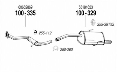 ALFA ROMEO 146 Twinspark 純正タイプ補修用マフラー センターパイプ+リアマフラー