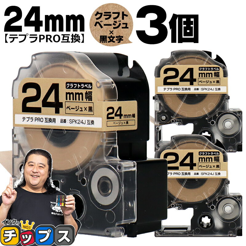 ベージュ 黒文字 24mm キングジム対応(KING JIM対応) 平日土日祝日配送 送料無料 ★安心1年保証★ 当店は2024年 楽天市場で最も選ばれたパソコン・周辺機器の信頼のショップです!テプラPRO用互換 キングジム対応 クラフト紙 SPK24J ベージュ 黒文字 24mm (テープ幅) 3個セット テプラPRO用互換テープ 互換テープ