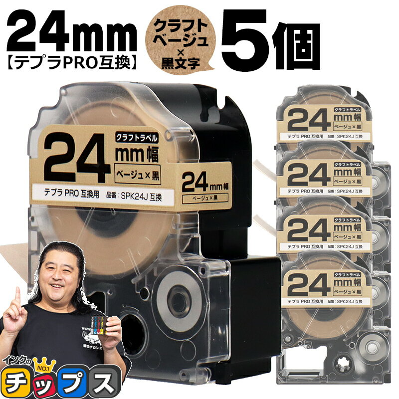 ベージュ 黒文字 24mm キングジム対応(KING JIM対応) 平日土日祝日配送 送料無料 ★安心1年保証★ 当店は2024年 楽天市場で最も選ばれたパソコン・周辺機器の信頼のショップです!テプラPRO用互換 キングジム対応 クラフト紙 SPK24J ベージュ 黒文字 24mm (テープ幅) 5個セット テプラPRO用互換テープ 互換テープ